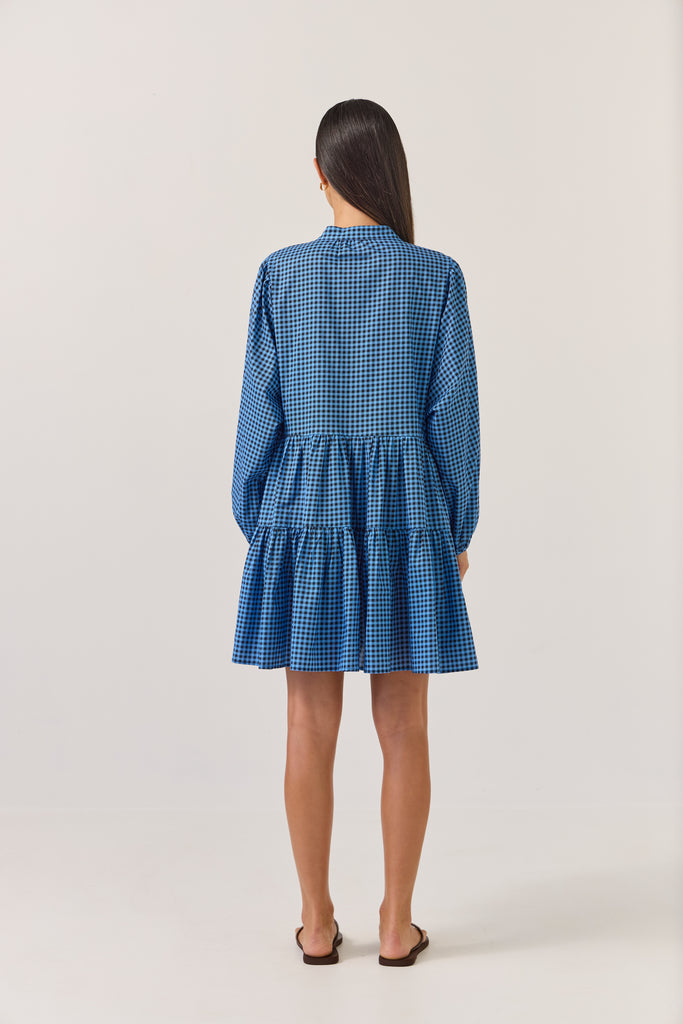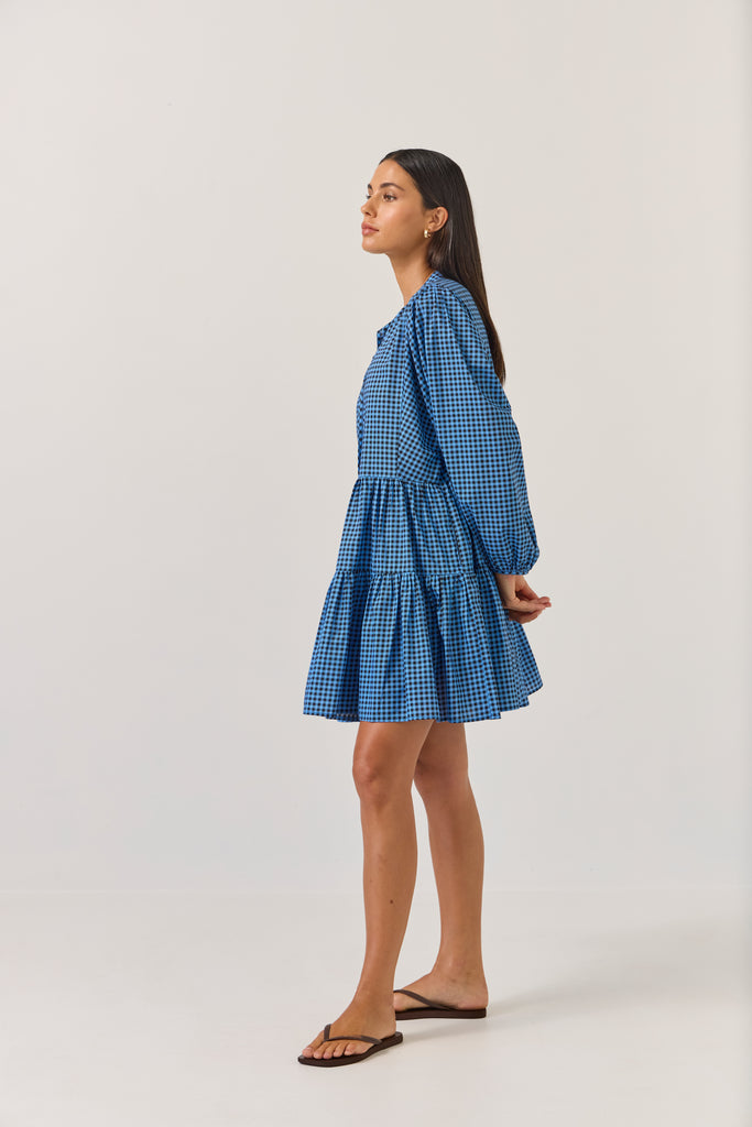 A brand new and super cute mini dress with a relaxed boxy body shape and fun billowy long sleeves. A great throw-on-and-go style for weekends and holidays in warm weather. Wear with sneakers or slides for a carefree casual look, or add boots for festival vibes.