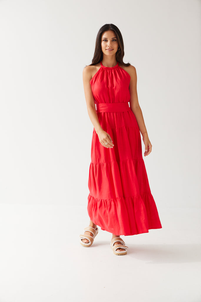 The dress is awesome! Sleeves give the right amount of cover and the waist ties are great! Lots of little details that make this dress able to be worn casual or dressy