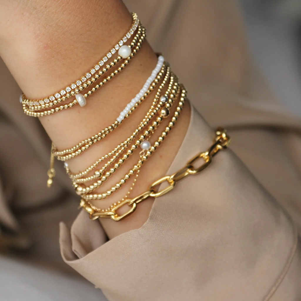 This beautiful diamanté adjustable tennis bracelet sparkles like diamonds and can be worn elegantly on its on or as part of a mix of your favourite DANE Jewellery bracelets such as the beaded bracelets which come in a range of sizes.