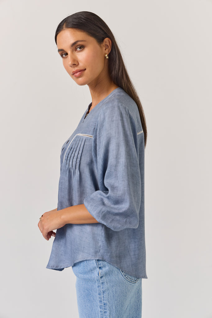 Our beautiful Saint Top now in a solid colour option. With beautiful pintucking and contrast ladder lace detail she’s the perfect mix of feminine and cool. A no-brainer with tonal denim or your summer whites, she makes a great workwear option too.
