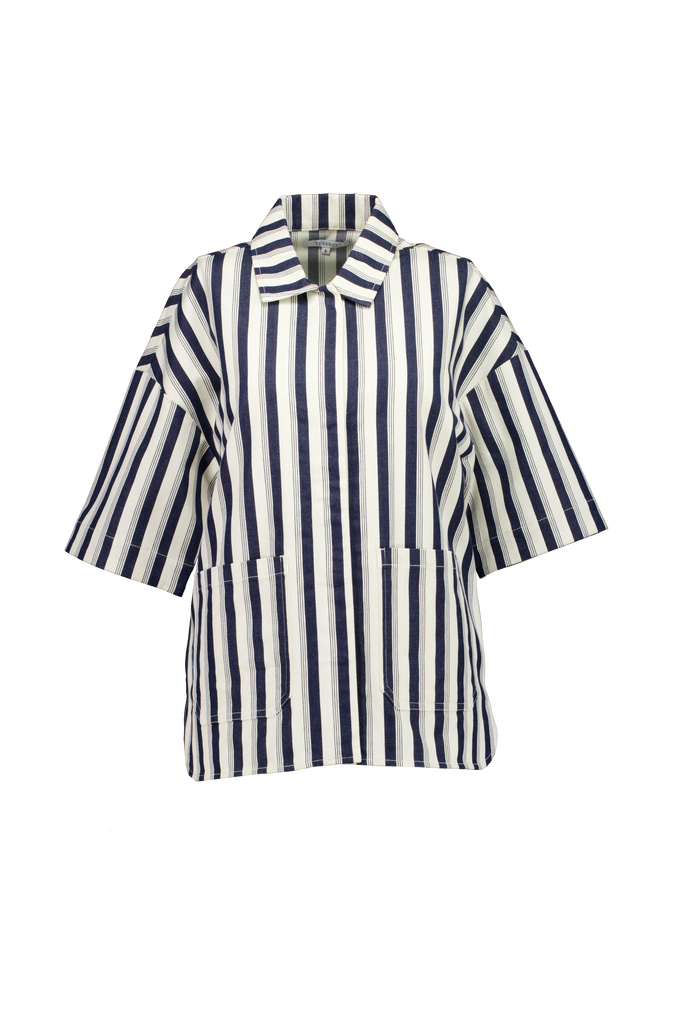 A denim shirt style top in a seriously fun lightweight denim stripe. Wear on its own as a top, or as an over-shirt like a jacket. Check out the matching Action Vest, Oakley Pants or Electric Shorts for statement layering pieces. This stripe looks great back with solid denim too.
